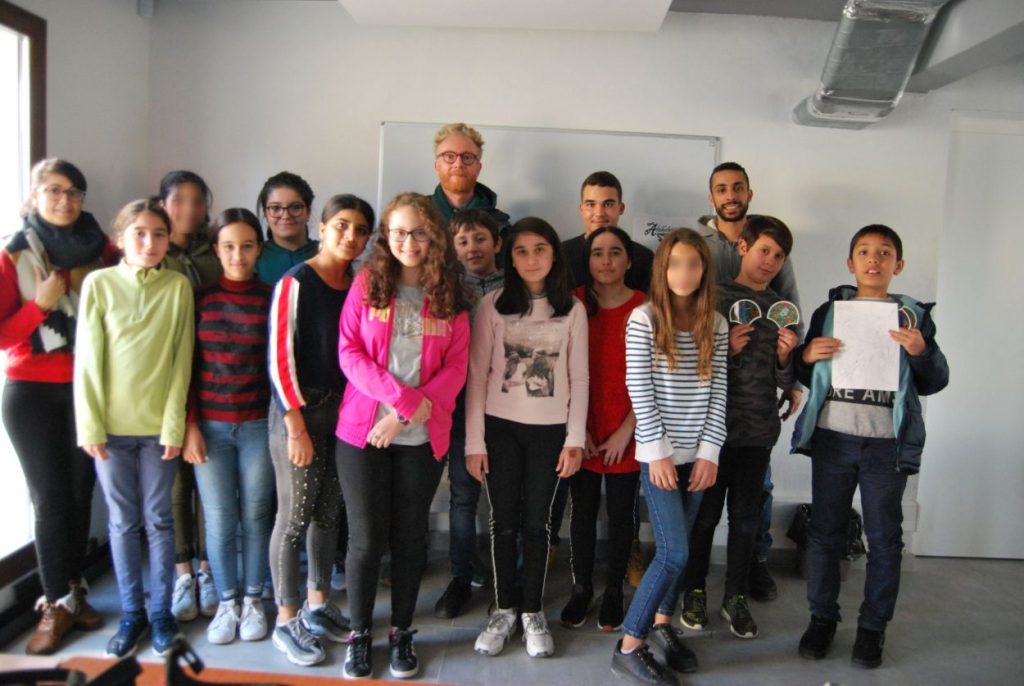 C’est reparti pour un atelier mensuel animé par Constance, journaliste intervenante pour L’Antre Lieux, auprès des collégiens allophones du collège Roumanille. Ils et elles s’appellent Hajine, Houssam, Qayum, Salma, Muskan, Lorena, Sawera, Mariam, Erona, Mohamed, Dikra, Houda, Aimen, Sirin et Zaid. Ils sont arrivés il y a peu d’Espagne, d’Italie, du Maroc, d’Irak, du Pakistan, de Palestine, d’Afghanistan, du Kosovo. Et chaque lundi, ce groupe du CLAS (contrat local d’accompagnement à la scolarité) sont accueillis par Chloé et Amin à l’espace social et culturel de la Croix des Oiseaux pour découvrir leur nouvelle ville et la culture française.